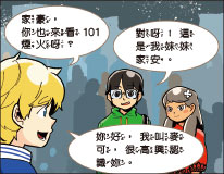 家豪,你也來看101煙火呀? 對呀!這是我妹妹家安。妳好,我叫麥可,很高興認識妳。你好,我也很高興認識你...