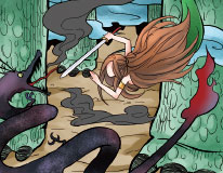 從前,有一個名叫女媧的女神,傳說她用黃土創造了人,並和人們快樂的生活著。沒想到,有一天,「轟隆─」的巨響...