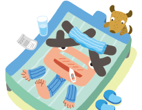 「療」先生在寒風中站了一夜,回來後就咳嗽感冒,生病躺在床上休息,家人只好請醫生來為他「治療...